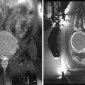 Venkatraman Indiran Bridging vessel sign Multiple vascular channels (white arrows) connecting uterus (black arrow) to an adjacent pelvic mass on imaging studies, is known as the ‘bridging vessel’ or ‘bridging vascular’ sign. Originally described on colour Doppler imaging, but also seen on computed tomography (CT) or magnetic resonance imaging (MRI). Helps in differentiating a mass of uterine origin, typically a subserosal fibroid, from other pelvic masses. Sensitivity and specificity of ‘bridging vessel sign’ in identifying subserosal fibroids range from 90% to 100%. (Best seen when subserosal fibroid is larger than 3 cm in diameter.) Ovarian masses invading the uterus may rarely produce a falsely positive bridging vessel sign. Broccoli sign Submucosal uterine leiomyoma prolapsing into the endocervical canal, along with its stalk in the uterine cavity on sagittal T2-weighted images together is called as ‘broccoli sign’ (white arrow). Submucosal uterine leiomyoma Bunch of grapes Intrauterine mass with cystic spaces without any associated foetal parts on ultrasound (white arrows) classically gives a ‘snow storm’ or ‘bunch of grapes’ appearance. Complete hydatidiform mole Hourglass sign Deep infiltrating endometriosis (DIE) affecting the posterior urinary bladder wall, usually in the midline, causes loss of its distensibility, resulting an hourglass configuration of urinary bladder. Deep infiltrating endometriosis (DIE) Hyperechoic line sign Normal endometrium surrounding the endometrial polyp on ultrasound appear as a hyperechoic rim on transvaginal ultrasound is called as ‘hyperechoic line sign’. Hyperechoic line sign represents a focal intracavitary lesion. Endometrial polyp Indian head dress sign/moose antler sign In deep infiltrating endometriosis (DIE), adhesions between the anterior wall of rectosigmoid and posterior wall of uterus, stretches the muscular layer of the bowel and creates an infiltrative nodule with parallel lines that extend from the adhesion to the rectosigmoid. This is called as ‘Indian head dress sign/moose antler sign’ (white arrow). This is seen on sagittal T2-weighted images as well as transvaginal ultrasound. Deep infiltrating endometriosis (DIE) Interstitial line sign An echogenic line that extends into the upper regions of the uterine horn and borders the margin of the intramural gestational sac is called as the ‘interstitial line sign’ (white arrow). Seen best on transabdominal/transvaginal ultrasound. Specific finding of interstitial pregnancy Mushroom cap sign Mushroom-shaped lesion which is seen displaced into the bowel lumen in patients with solid invasive endometriosis of the rectosigmoid colon on axial or sagittal T2-weighted MRI is called as ‘mushroom cap sign’ (red box and white arrow). Low signal intensity base of the mushroom corresponds to hypertrophy and fibrosis of the muscularis propria, whereas the high intensity cap represents oedematous mucosa and submucosa. Deep infiltrating endometriosis (DIE) Pedicle artery sign Feeding vessel sign Central vessel entering the endometrium from the surrounding myometrium colour Doppler imaging of the endometrium in endometrial polyps is called as pedicle artery sign (white arrow). Endometrial polyps in women with postmenopausal bleeding. (Sensitivity of 76.5%; specificity of 95.3%.) Popcorn ball calcification Dense, amorphous calcifications of uterine fibroids seen on the plain radiographs is called as ‘popcorn calcification’ (white arrow). Confluent, coarse calcification constitutes the most specific radiographic sign of a benign uterine fibroid; but only 10% or fewer of fibroids show calcification. Question mark sign of uterus The uterine corpus that is flexed backward with the fundus of the uterus facing the posterior pelvic compartment and the cervix directed anteriorly toward the urinary bladder, is called as question mark sign of uterus (white arrow). Also called as comma-shaped uterus. 93% specificity and 75% sensitivity in diagnosing adenomyosis uterus. Sliding organs’ sign When the uterus and ovaries glide freely over the posterior and anterior organs (such as rectum and urinary bladder, respectively) during real-time dynamic transvaginal sonography, it is called as ‘positive sliding organs’ sign’. In case of adhesions due to endometriosis, free gliding of organs is absent and is called as negative sliding sign. Snowstorm sign Grainy appearance with low-level homogeneous internal echoes which move slowly downward due to their viscosity seen in endometrioma on transvaginal ultrasound is called as snowstorm sign. Endometriomas Split fibre sign Presence of curvilinear T2 hypointense strands within the degenerated leiomyoma separated by the fluid accumulation and oedema is called as the ‘split fibre’ sign. Split fibre sign on T2-weighted MRI can be used to differentiate hydropic degeneration from other conditions like malignant change. Three-line sign or triple line sign or trilaminar appearance Shortly before ovulation, two additional bright linear echoes outline two hypoechoic layers of endometrium with a central hyperechoic line in the endometrium (white arrow). It is called as the ‘three-line sign’ or ‘triple line sign’ or trilaminar appearance. A triple-line pattern with a moderate endometrial thickness is associated with a good clinical outcome on in-vitro fertilization. Venetian blind shadowing Also known as ‘rain shower’ appearance Heterogeneous myometrial appearance due to hyperechoic heterotopic endometrial tissue and hypoechoic hyperplastic smooth muscle appearing as vertical linear bands of shadows on ultrasound is called as ‘Venetian blind shadowing’. Classically described in uterine adenomyosis; sometimes in uterine fibroids also. Bead on strings sign Thickened endosalpingeal longitudinal folds within a dilated fallopian tube without wall thickening appears as small mural nodules on cross-sectional images on ultrasound
